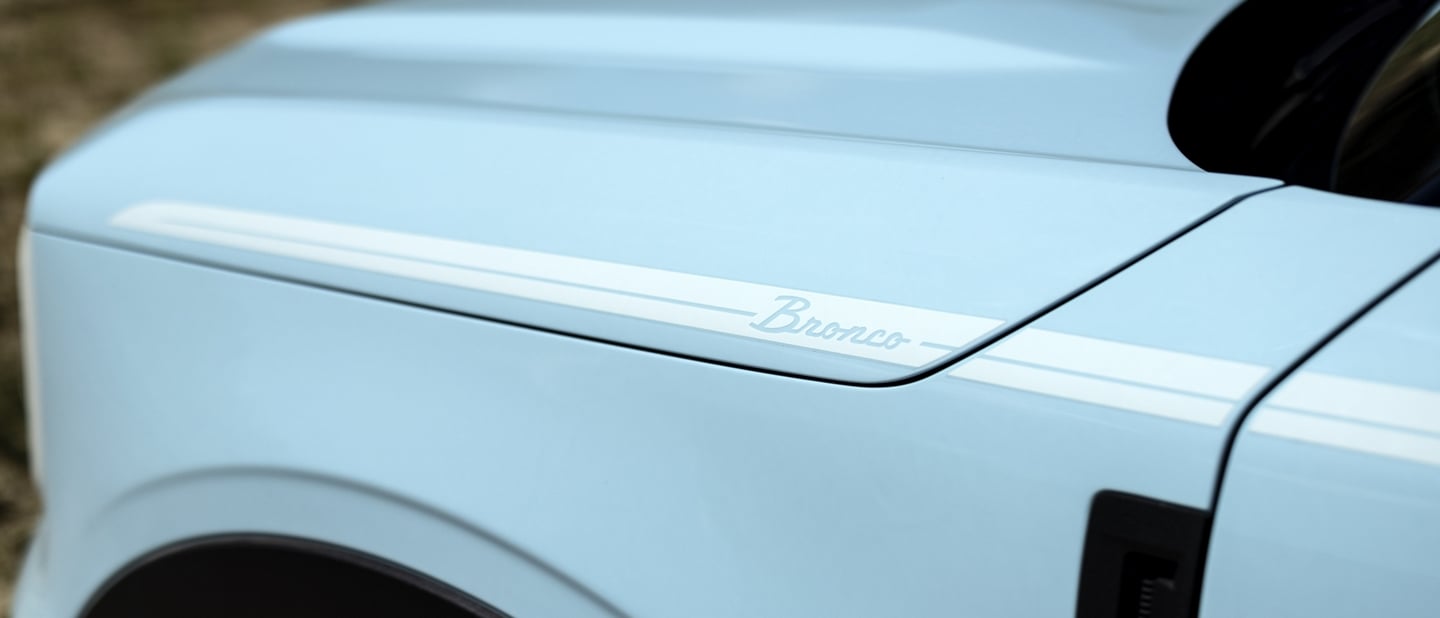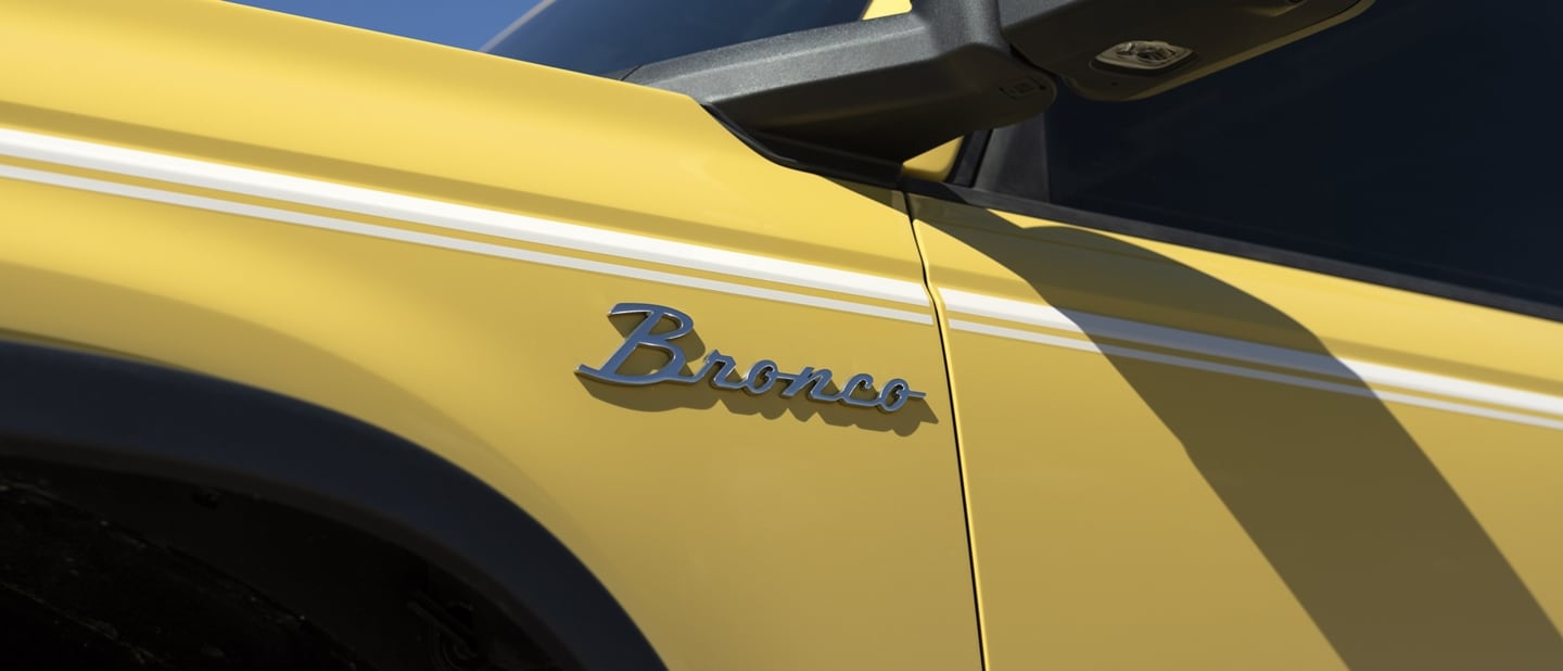 This fresh interpretation of an original 1966 Bronco® color makes a bold, stylish statement. The white accent striping with knock-out script adds to its retro-style look.