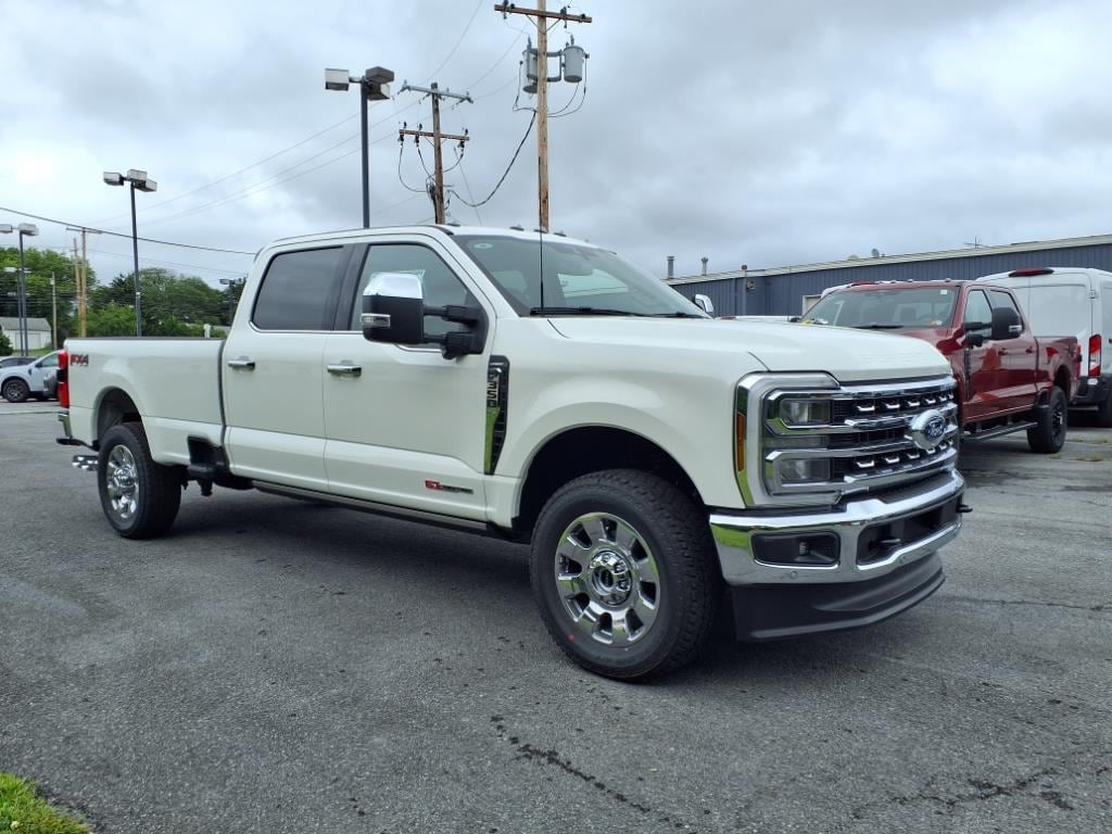 Star White Metallic Tri-Coat 2025 Ford F-350SD Lariat 4WD 10-Speed Automatic 6.7L High Output Power Stroke V8 Diesel 4WD, ABS brakes, Alloy wheels, Compass, Electronic Stability Control, Front dual zone A/C, Heated door mirrors, Heated front seats, Heated rear seats, Illuminated entry, Low tire pressure warning, Navigation System, Remote keyless entry, Traction control.