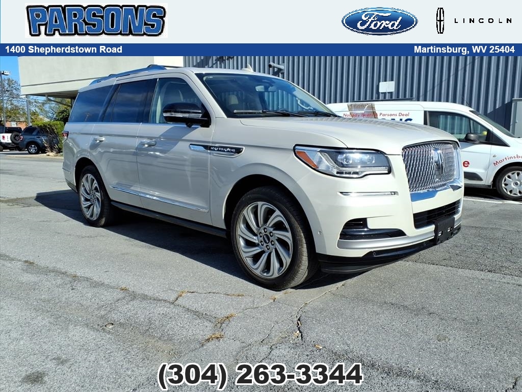 Ceramic Pearl Metallic Tri-Coat 2023 Lincoln Navigator Reserve 4WD V6 4WD, Sandstone w/Prem Lthr Auto Htd/Ventiltd Perfect Position Seats, Equipment Group 201A Reserve I, Illuminated 1st & 2nd Row Seat Belts, Lincoln Lit Star in Grille, Luxury Package, Navigation system: Connected Navigation (3-year trial), Perfect Position Seats (30-Way) w/Active Motion, Radio: Revel Ultima 3D Audio System w/28 Speakers.