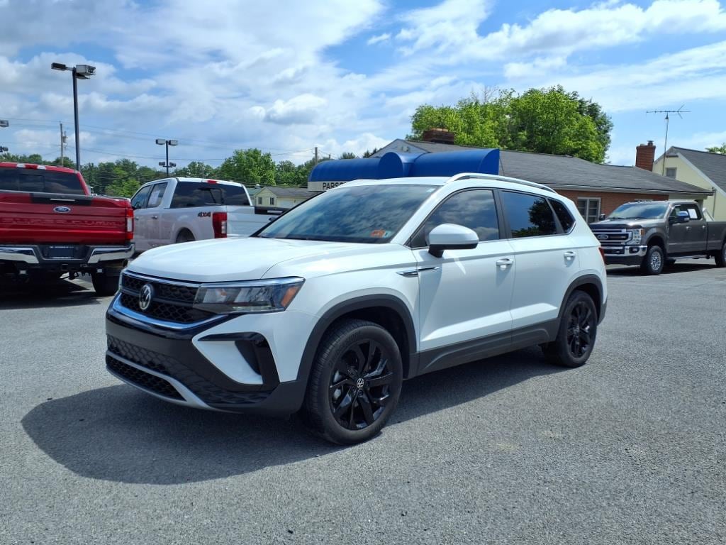 Pure White 2023 Volkswagen Taos 1.5T SE AWD 1.5L I4 Turbocharged DOHC 16V LEV3-SULEV30 158hp Clean CARFAX. ONE OWNER, Air Conditioning, AM/FM radio: SiriusXM with 360L, CloudTex & Cloth Seating Surfaces, Electronic Stability Control, Exterior Parking Camera Rear, First Aid Kit, Fully automatic headlights, Heated Front Comfort Seats, Heated front seats, Panic alarm, Power driver seat, Power windows, Radio: MIB3 Composition Media AM/FM/HD, Rain sensing wipers, Rear window defroster, Remote keyless entry, Spoiler, Steering wheel mounted audio controls, Telescoping steering wheel, Tilt steering wheel, Wheels: 18" Black Painted Alloy.